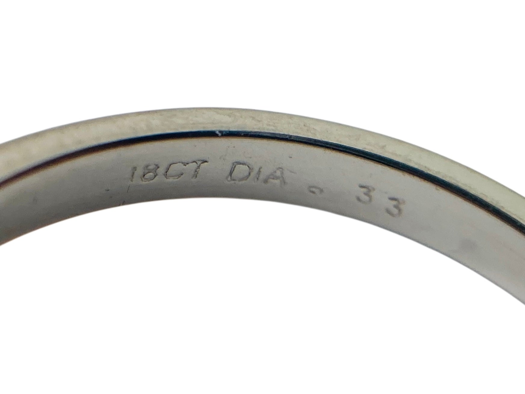 UK hallmark for 18ct gold. Assayed in London, marked for 0.33ct diamond.