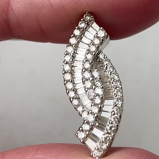 The pendant features baguette-cut and round-cut diamonds. With an estimated total diamond weight of 1.00ct of diamonds.