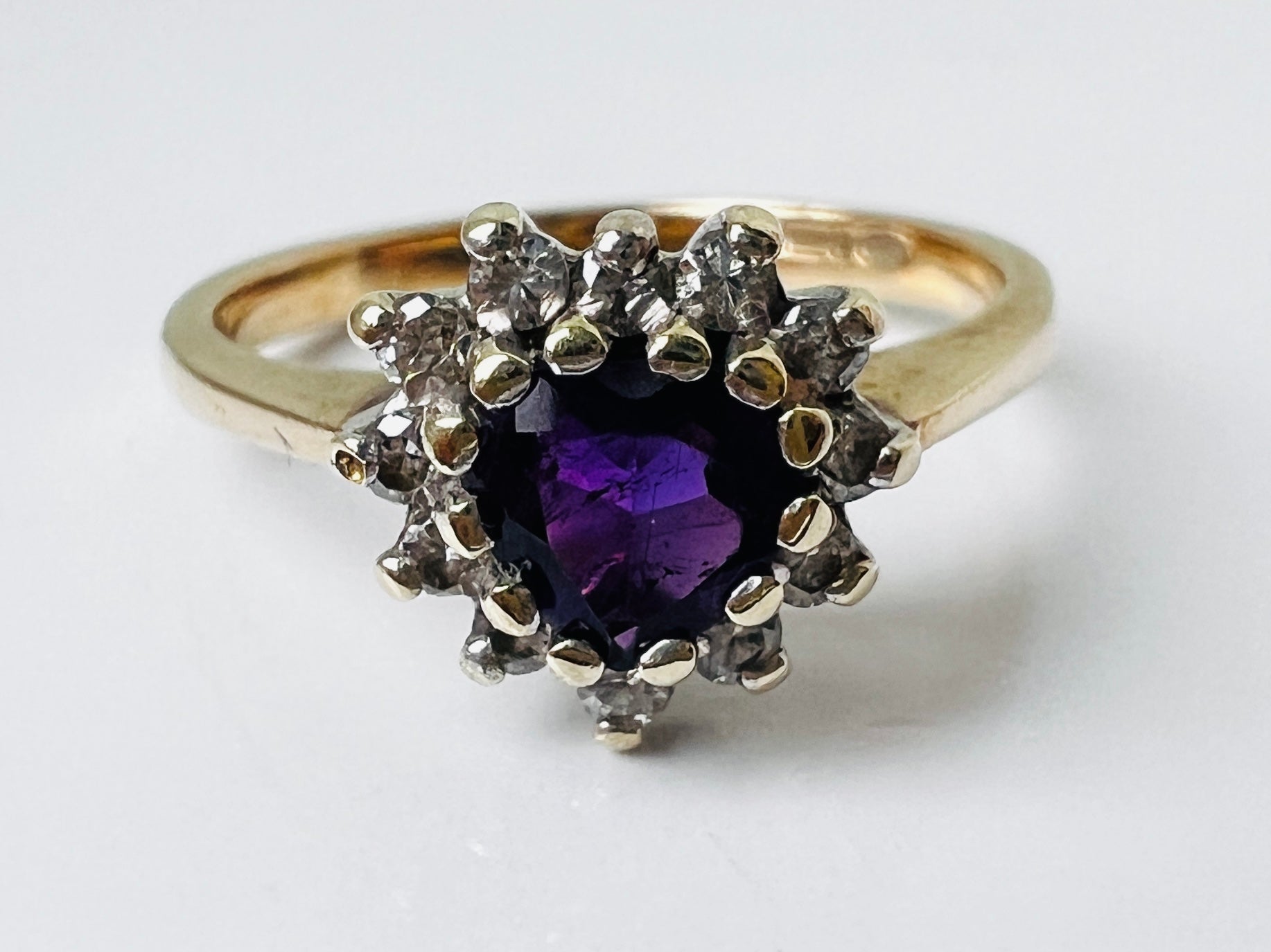 Vintage 9ct Gold Amethyst & Diamond Ring