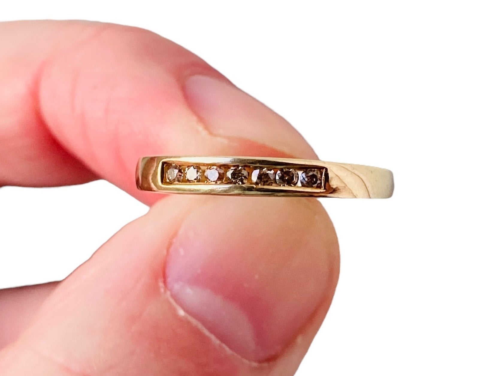 A Dainty 9ct Yellow Gold Champagne Diamond Band Ring