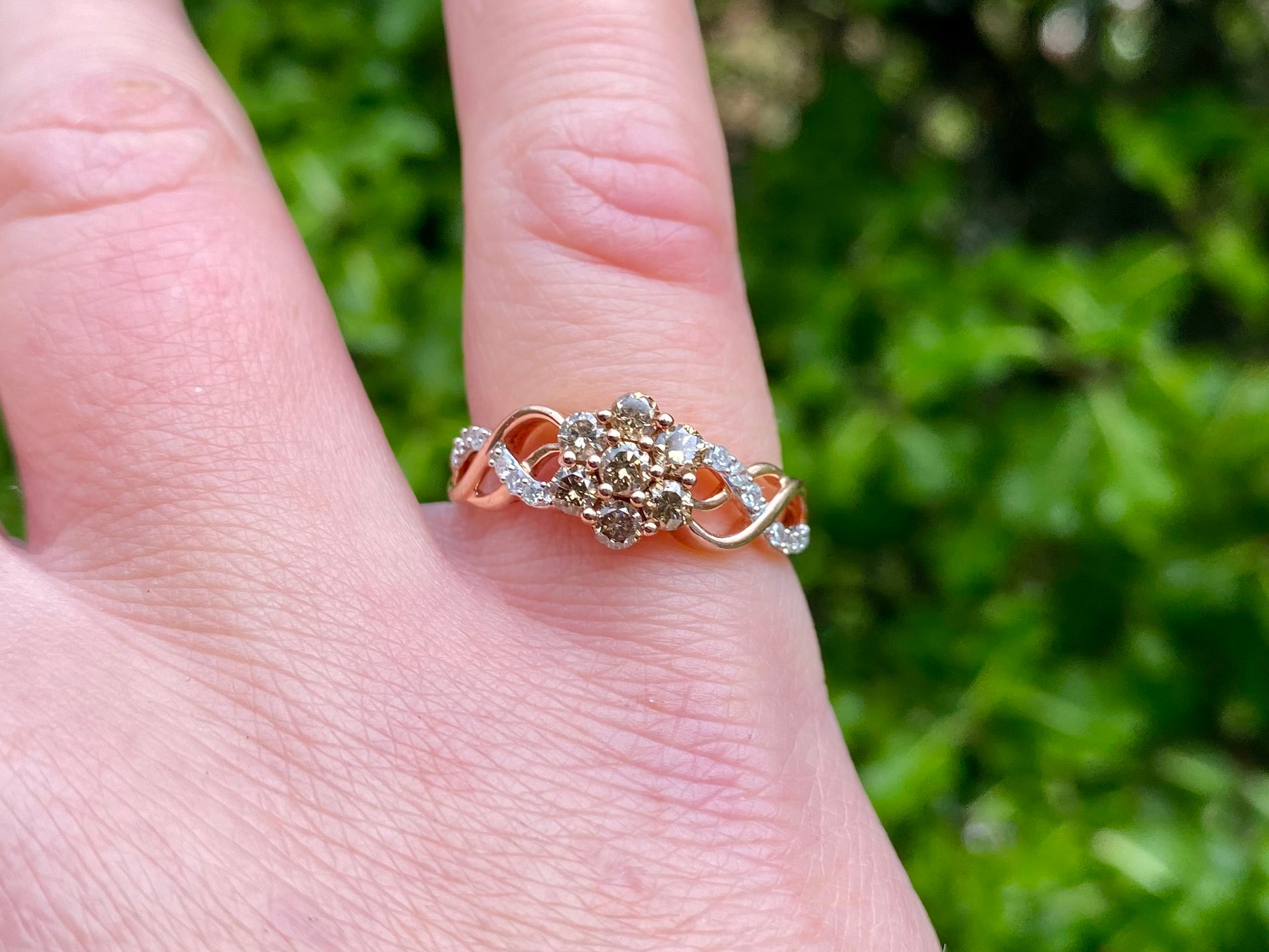 9ct Rose Gold Champagne & White Diamond Ring