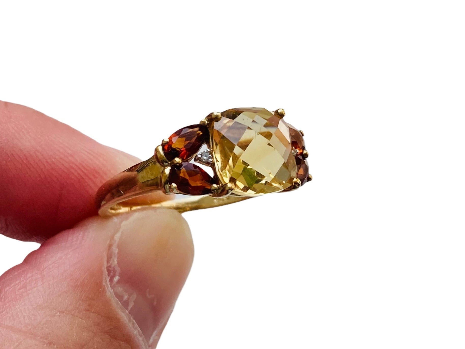 9ct Yellow Gold Citrine, Hessonite Garnet & Diamond Ring