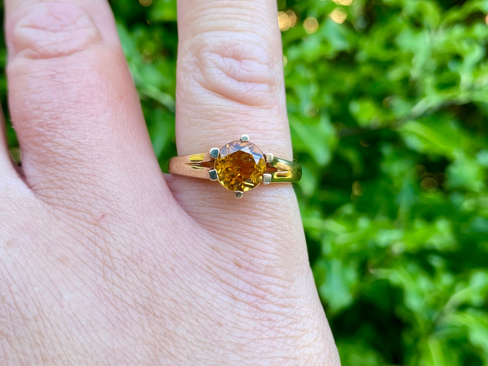 The ring features a 7mm round-cut citrine.