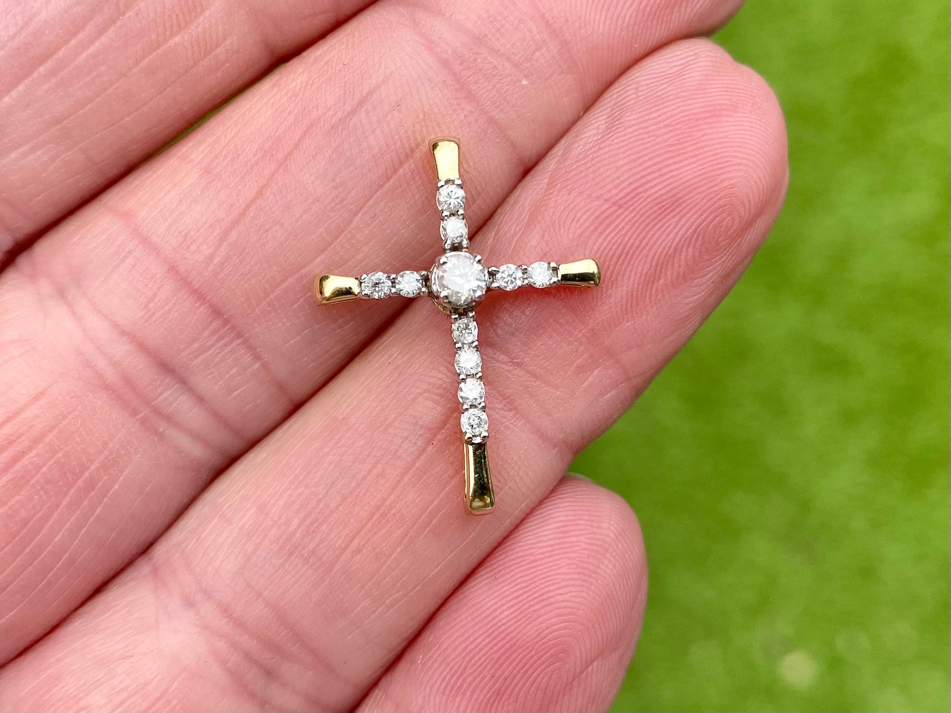 Set with a 3mm round-cut natural diamond and ten 1.5mm round diamonds. Total estimated diamond weight of 0.25cts.