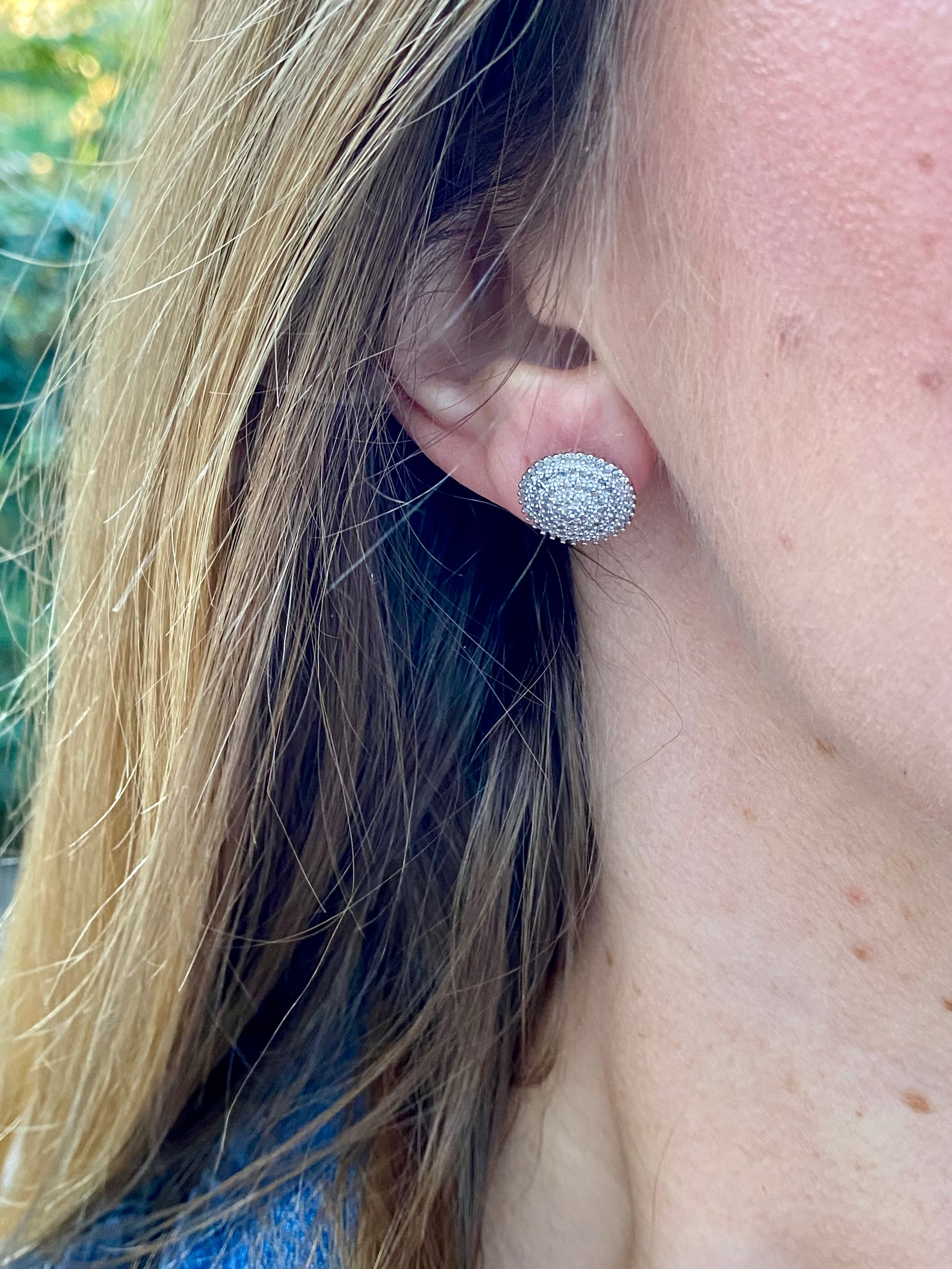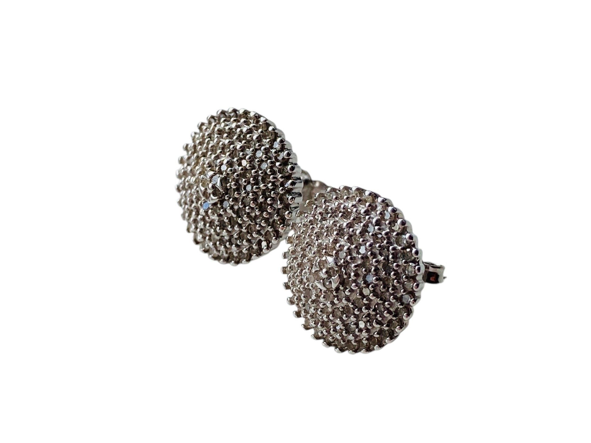The face of each earring measures 12mm wide and features a cluster of very small round cut diamonds.