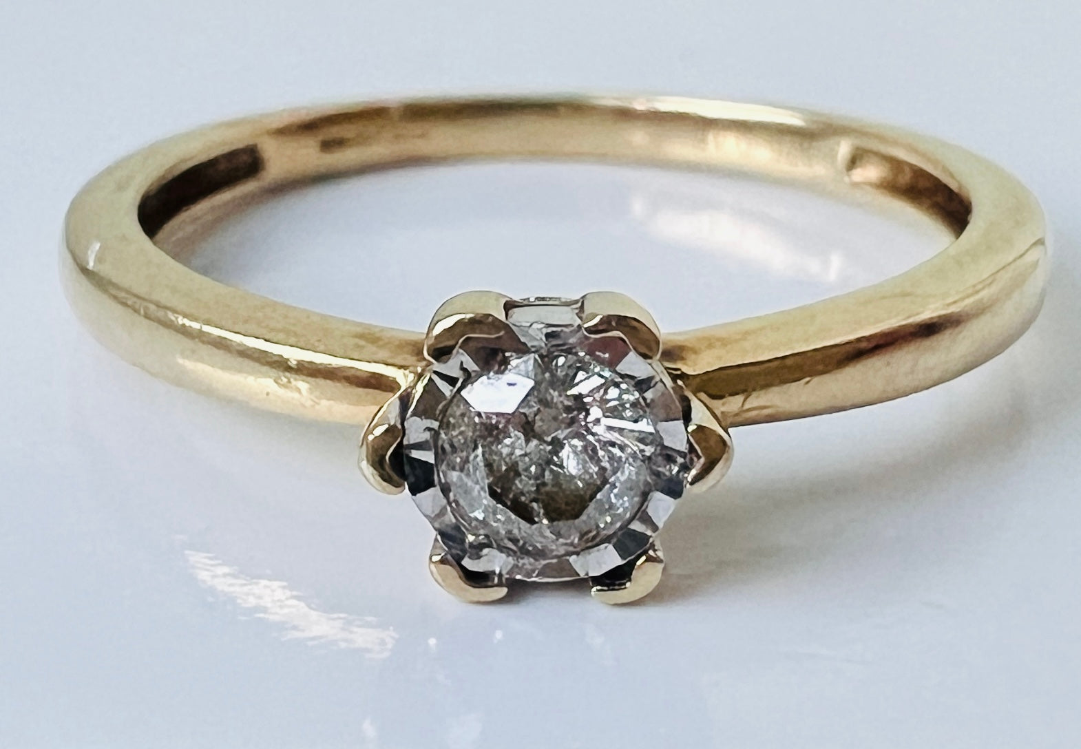 A Dainty Vintage 9ct Yellow Gold Diamond Solitaire Ring