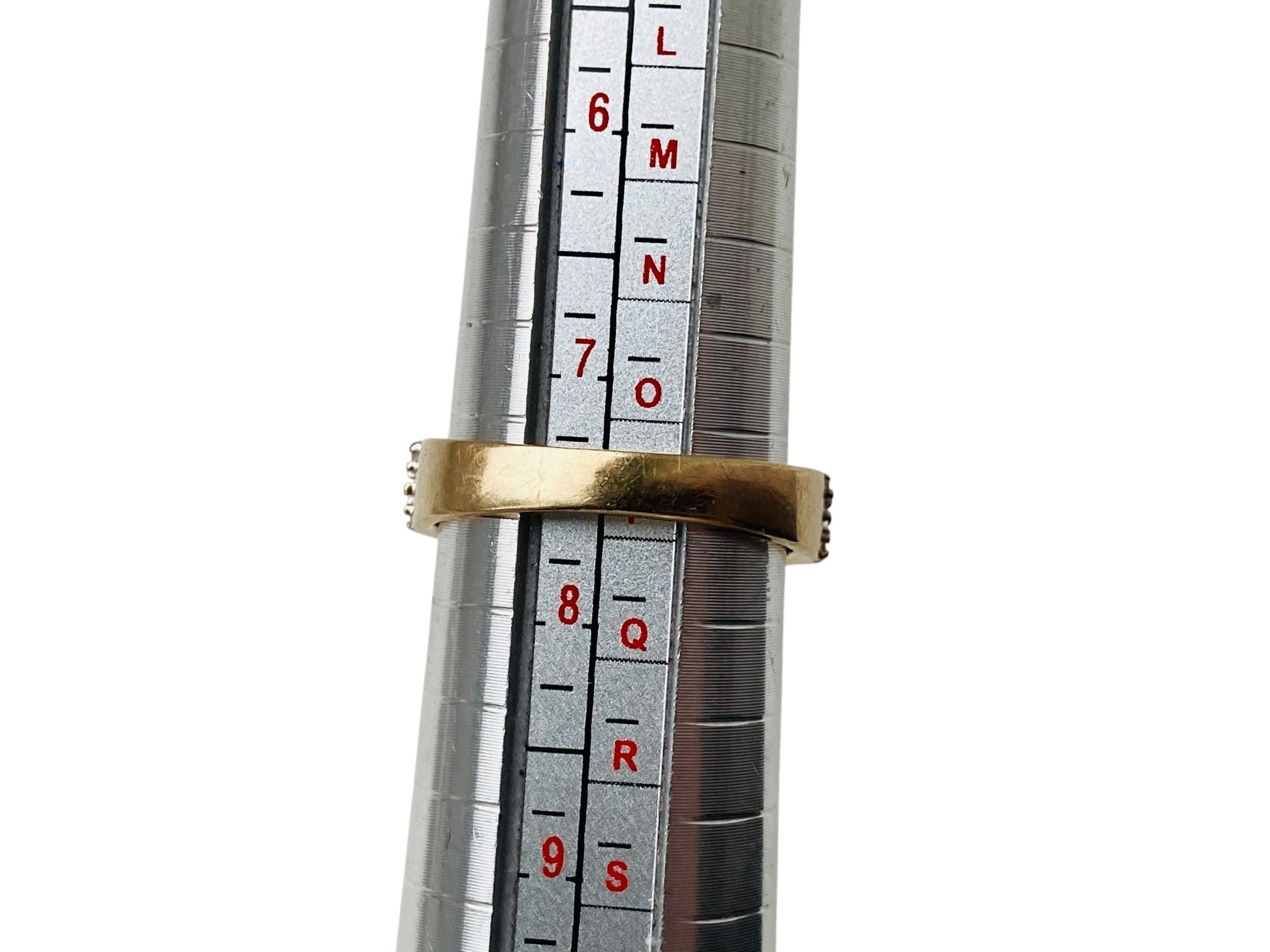The face of the ring measures 20 x 5mm and is set with three rows of round-cut diamonds. Which are set half way around the band. Estimated total diamond weight of 0.66cts.