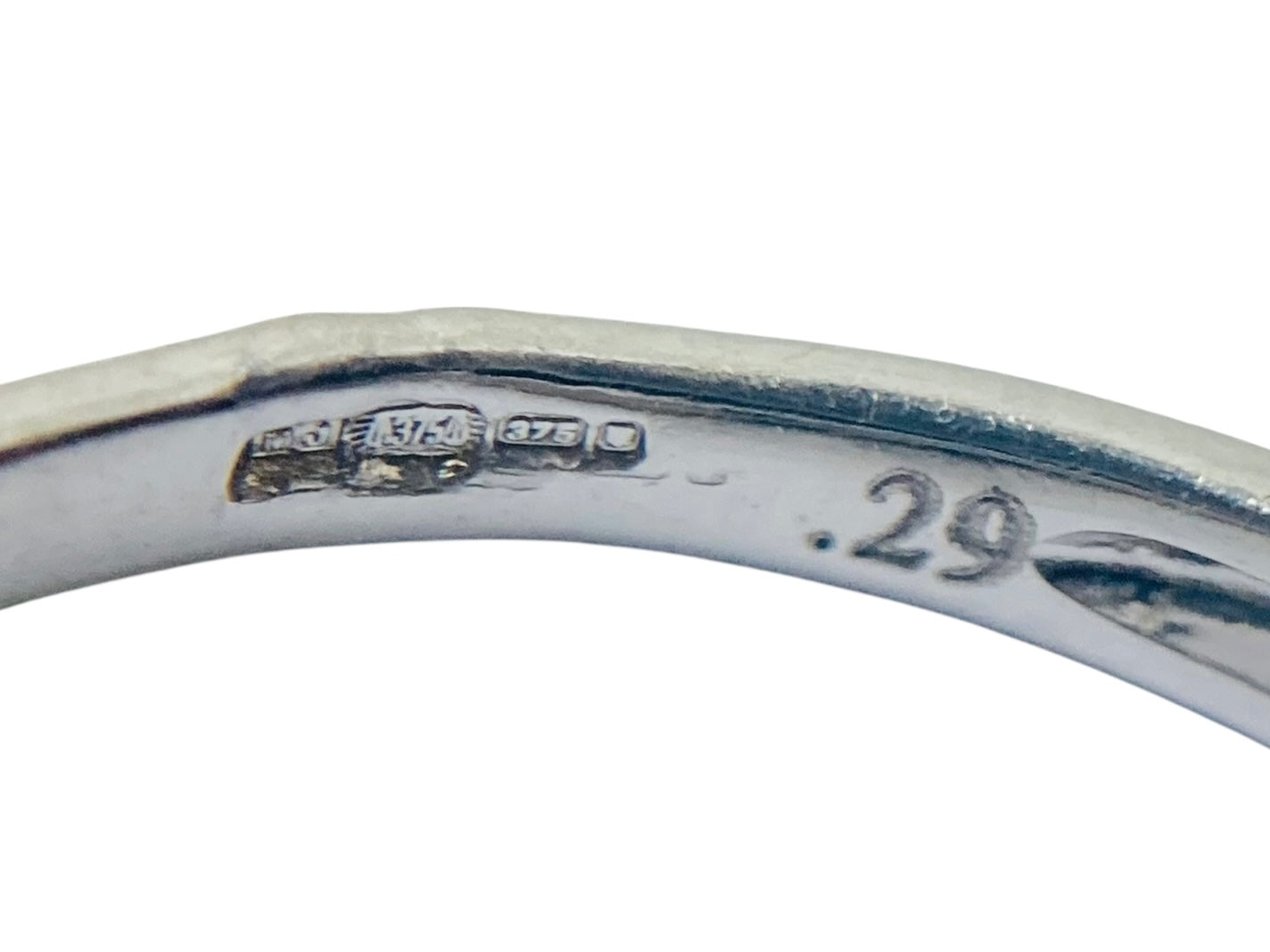 UK hallmark for 9ct Gold. Assayed in London, marked for 0.29cts of diamonds.