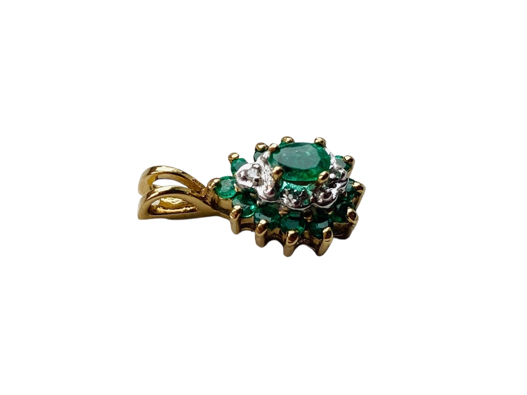 10ct Yellow Gold Emerald & Diamond Pendant