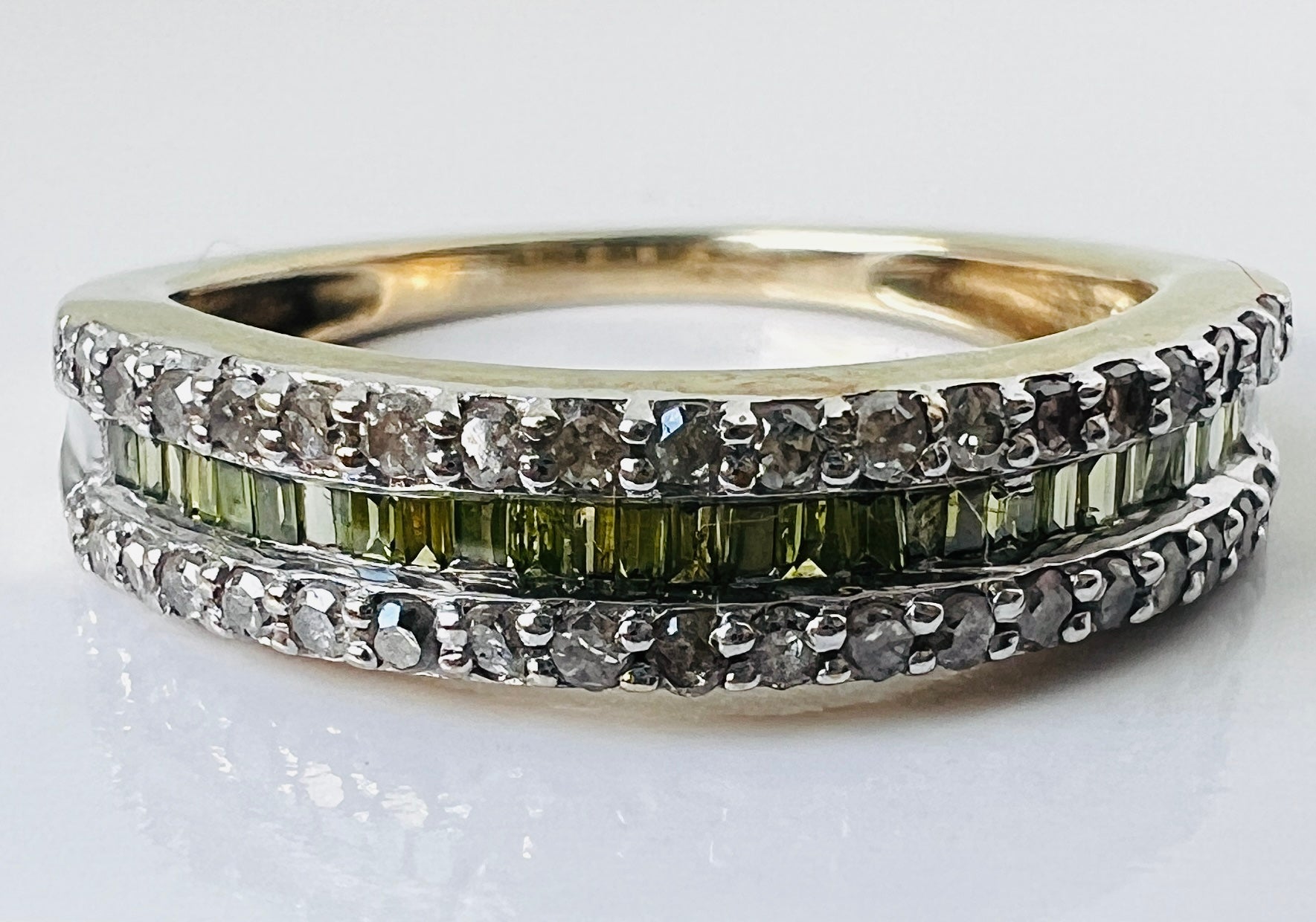 9ct Yellow Gold Green & White Diamond Ring
