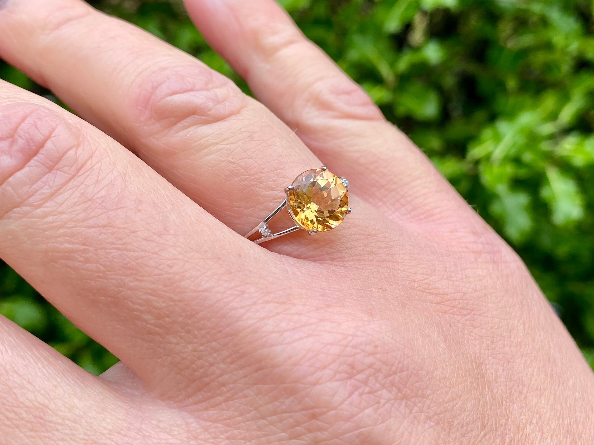 9ct White Gold Orange Topaz & Diamond Ring