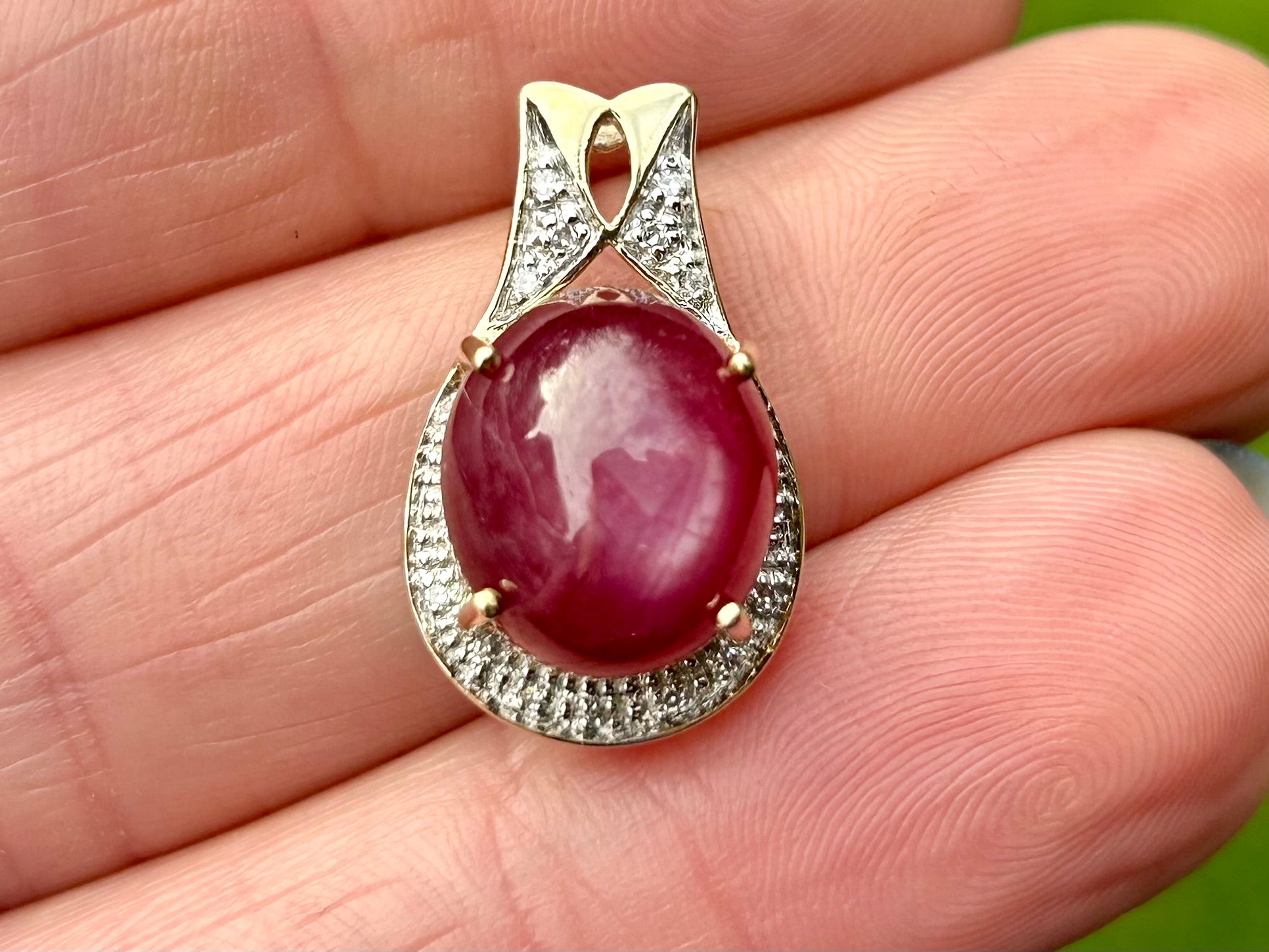 9ct Yellow Gold Cabochon Ruby & Diamond Pendant