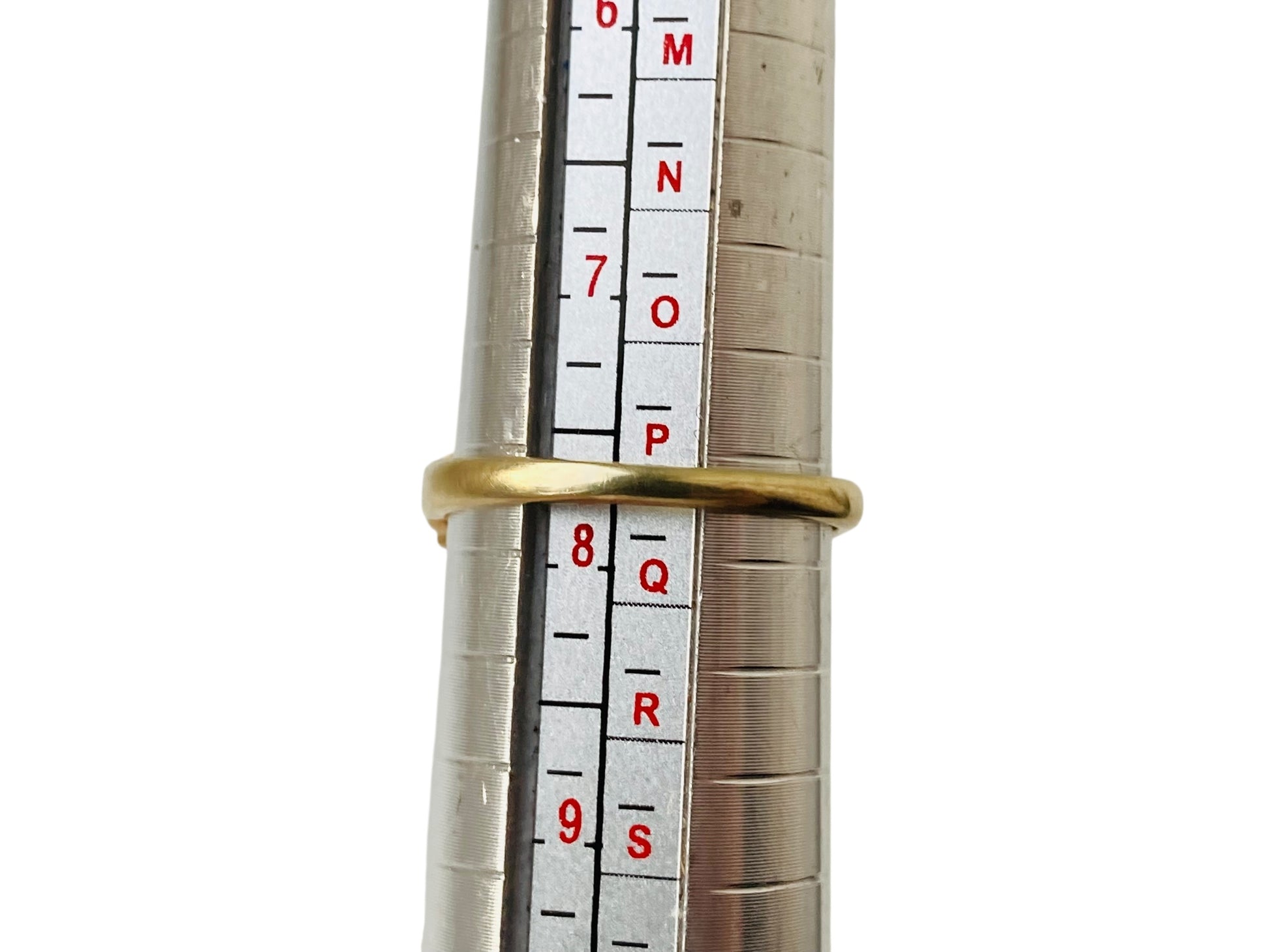 The front of the ring measures 5mm wide and features four slightly oval rubies and three very small illusion set round diamonds.