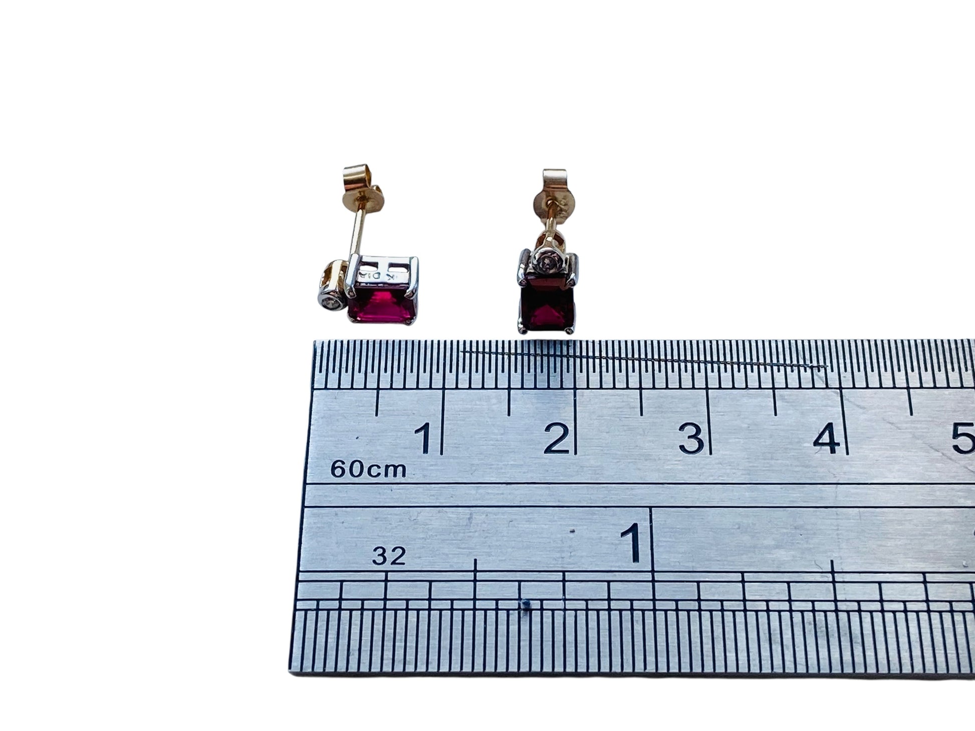 9ct Gold Synthetic Ruby & Diamond Earrings