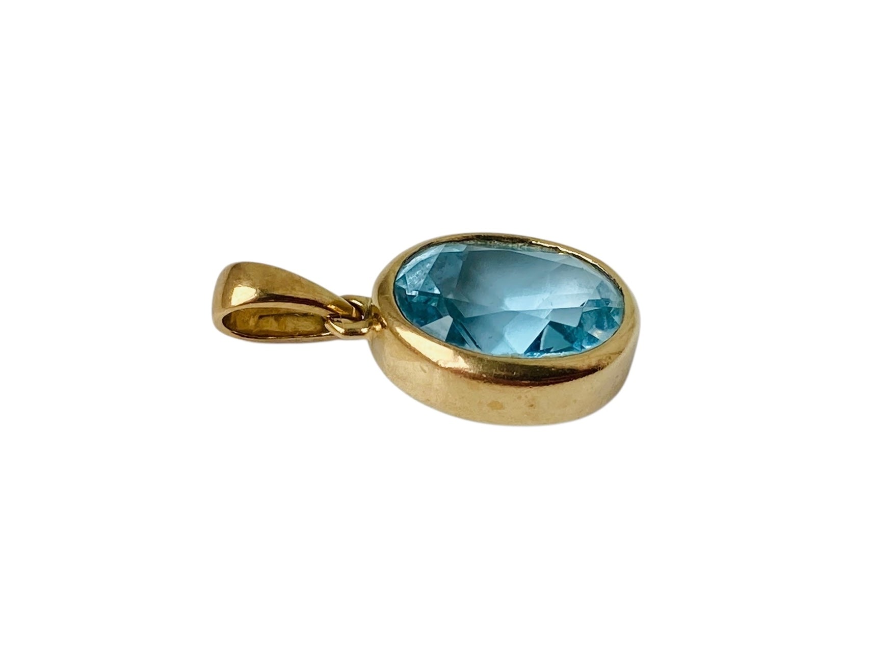 The pendant is set with a 10 x 8mm oval-cut bezel-set topaz.