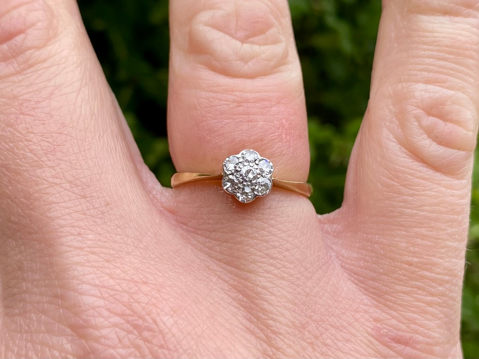 A Dainty Antique 18ct Yellow Diamond Daisy Ring