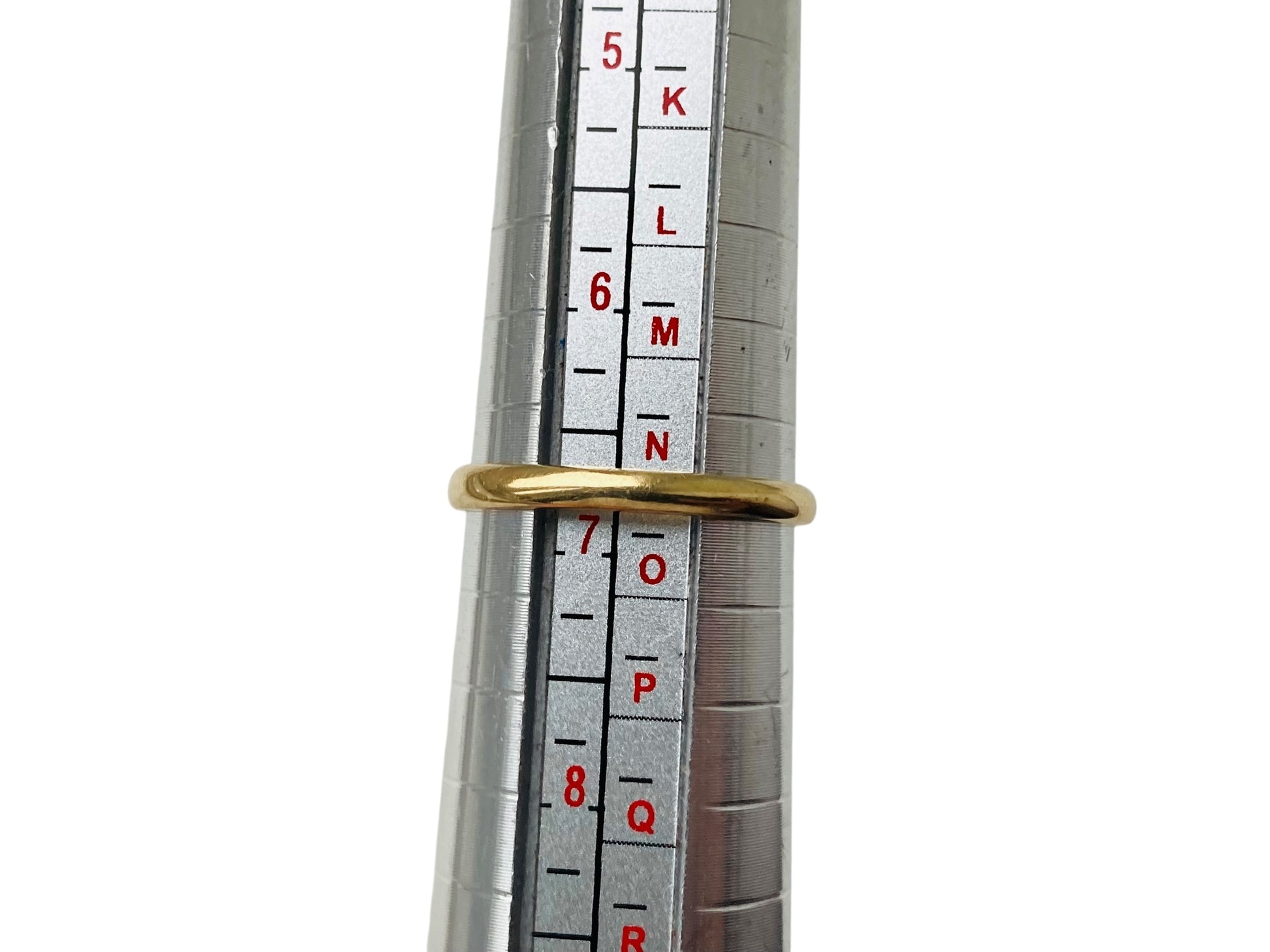 The ring is set with five round bezel-set natural earth mined diamonds the middle diamond measures 2.2mm wide. Total estimated diamond weight of 0.24cts.