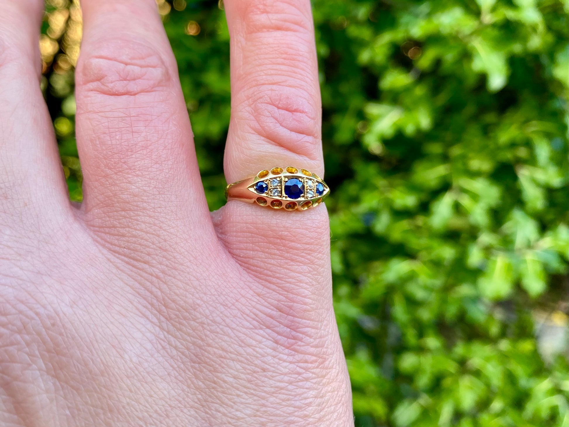 Antique 18ct Yellow Gold Sapphire & Diamond Ring