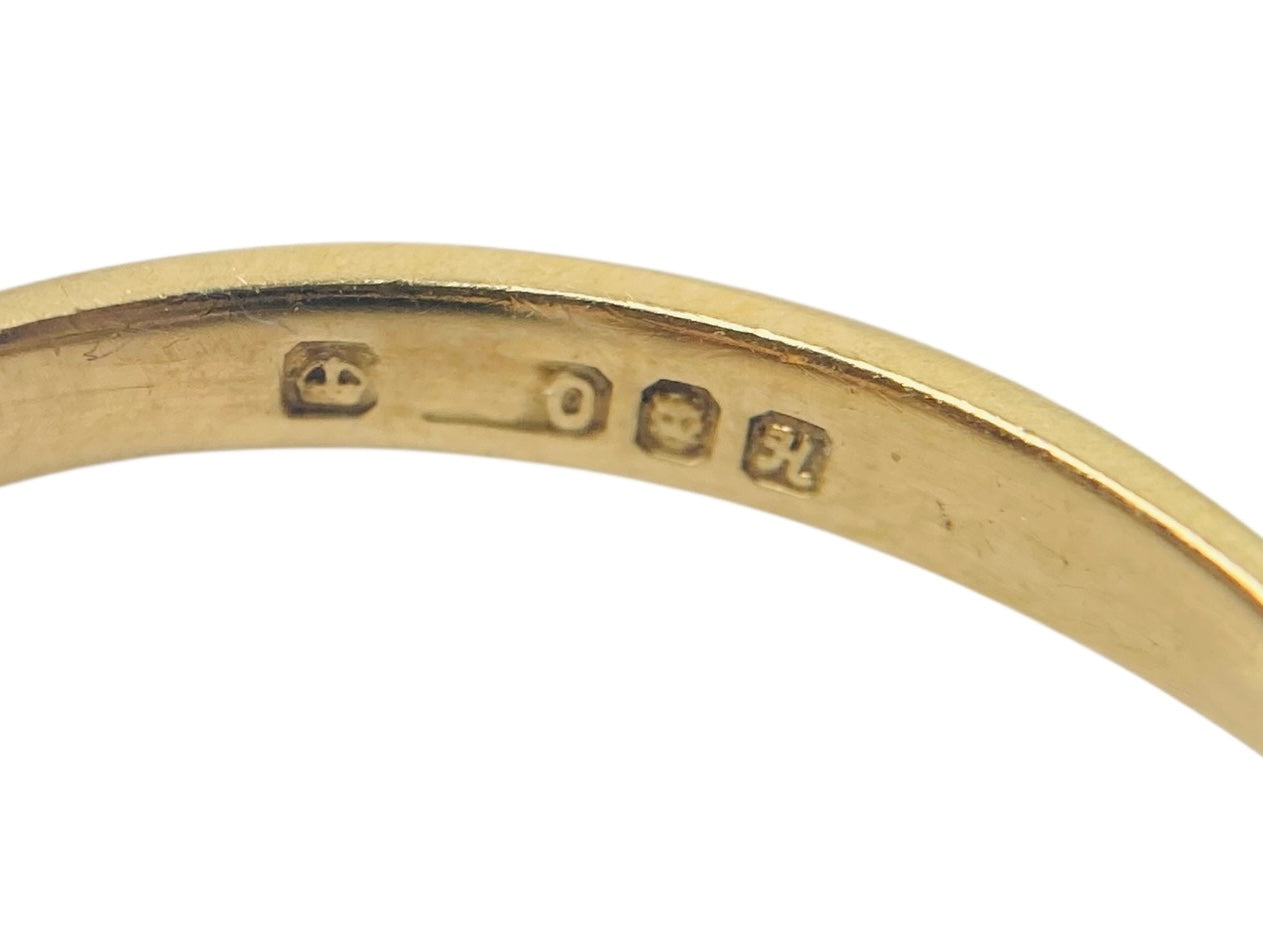 UK hallmark for 18ct gold, and has been XRF tested for 18ct gold. Assayed in London, made in 1982 (partly faded).