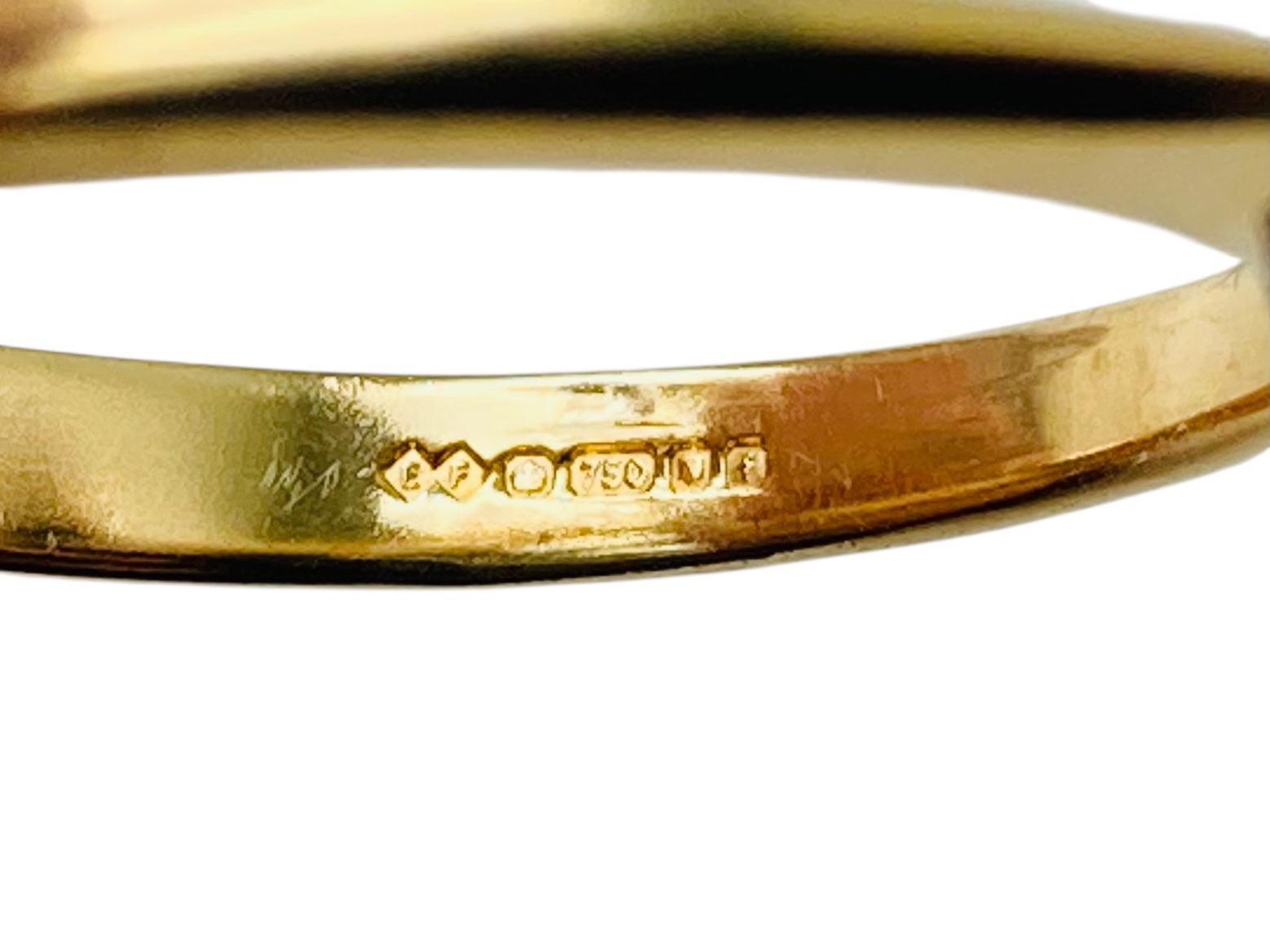 UK hallmark for 18ct gold. Assayed in London, made in 2005.