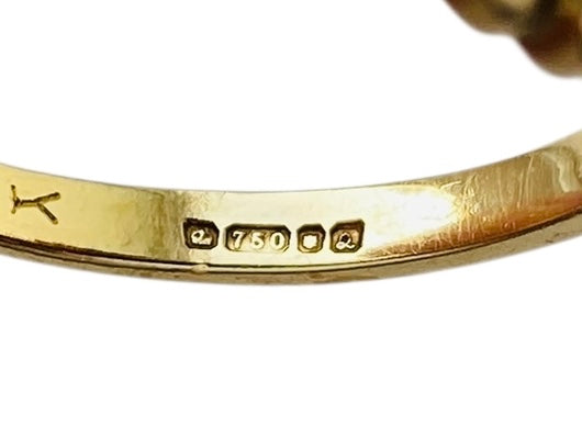 UK hallmark for 18ct gold. Assayed in London, made in 1990.