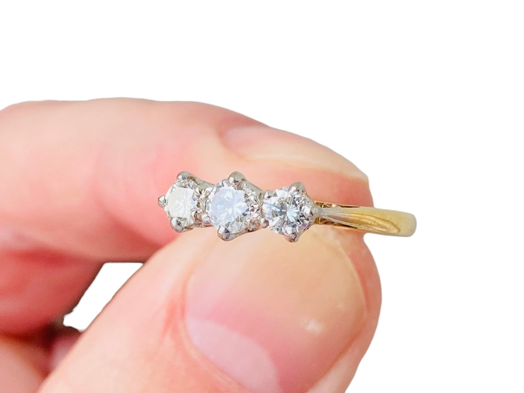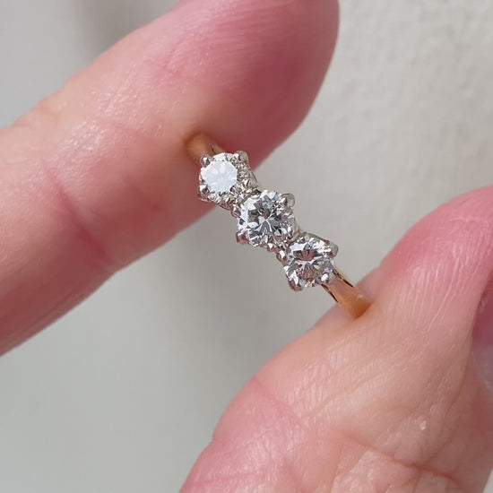 Vintage 18ct Yellow Gold & Platinum Three-Stone Diamond Ring