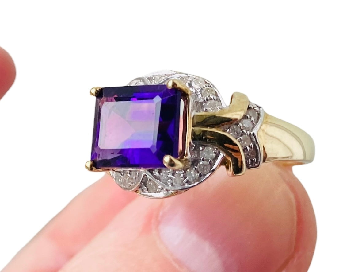 9ct Gold Amethyst & Diamond Ring