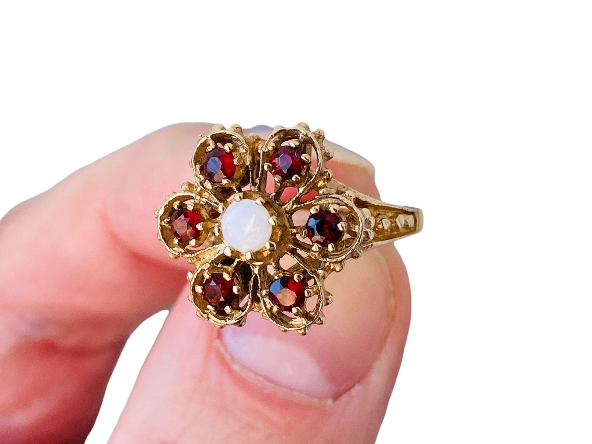 Vintage 9ct Yellow Gold Opal & Garnet Ring