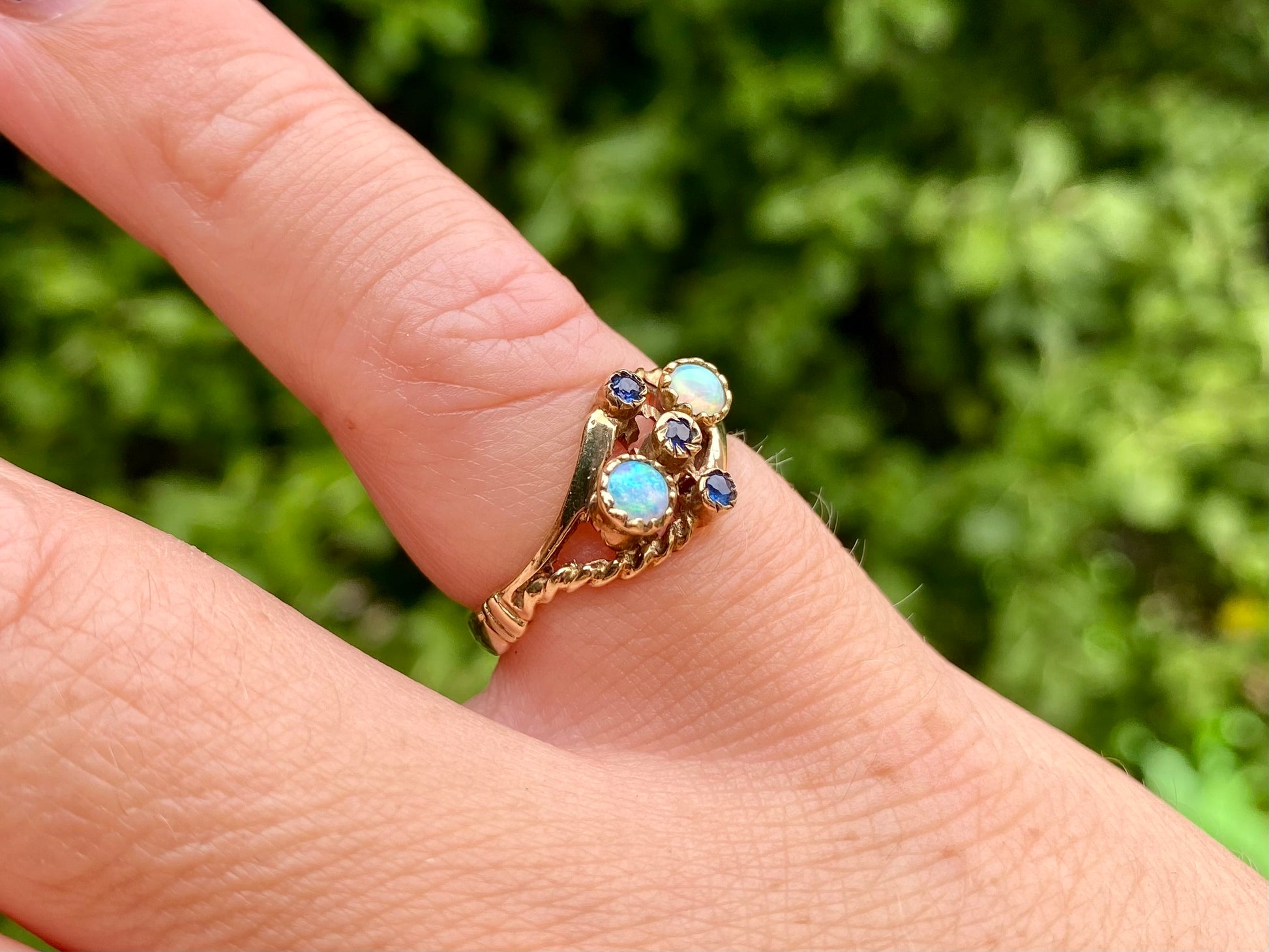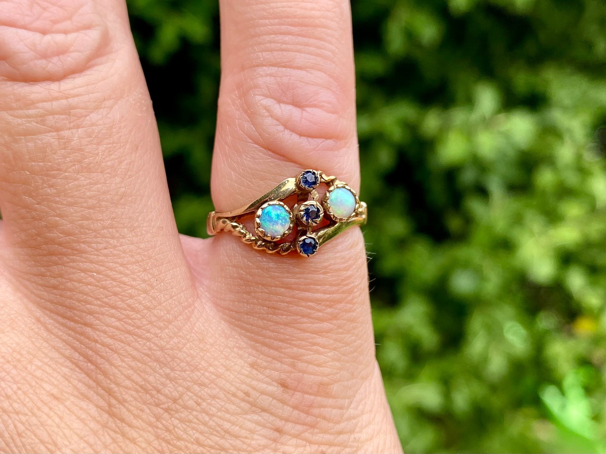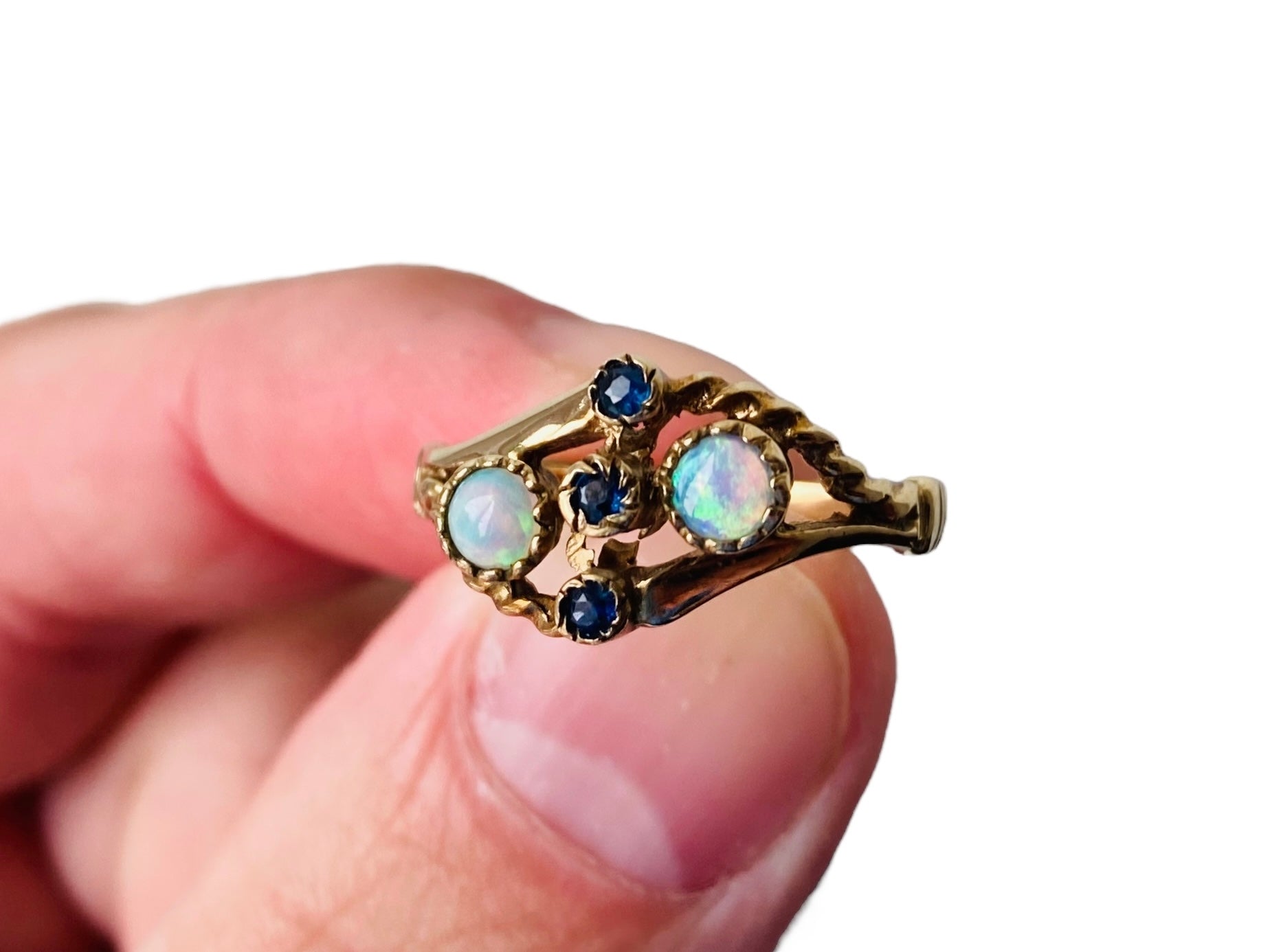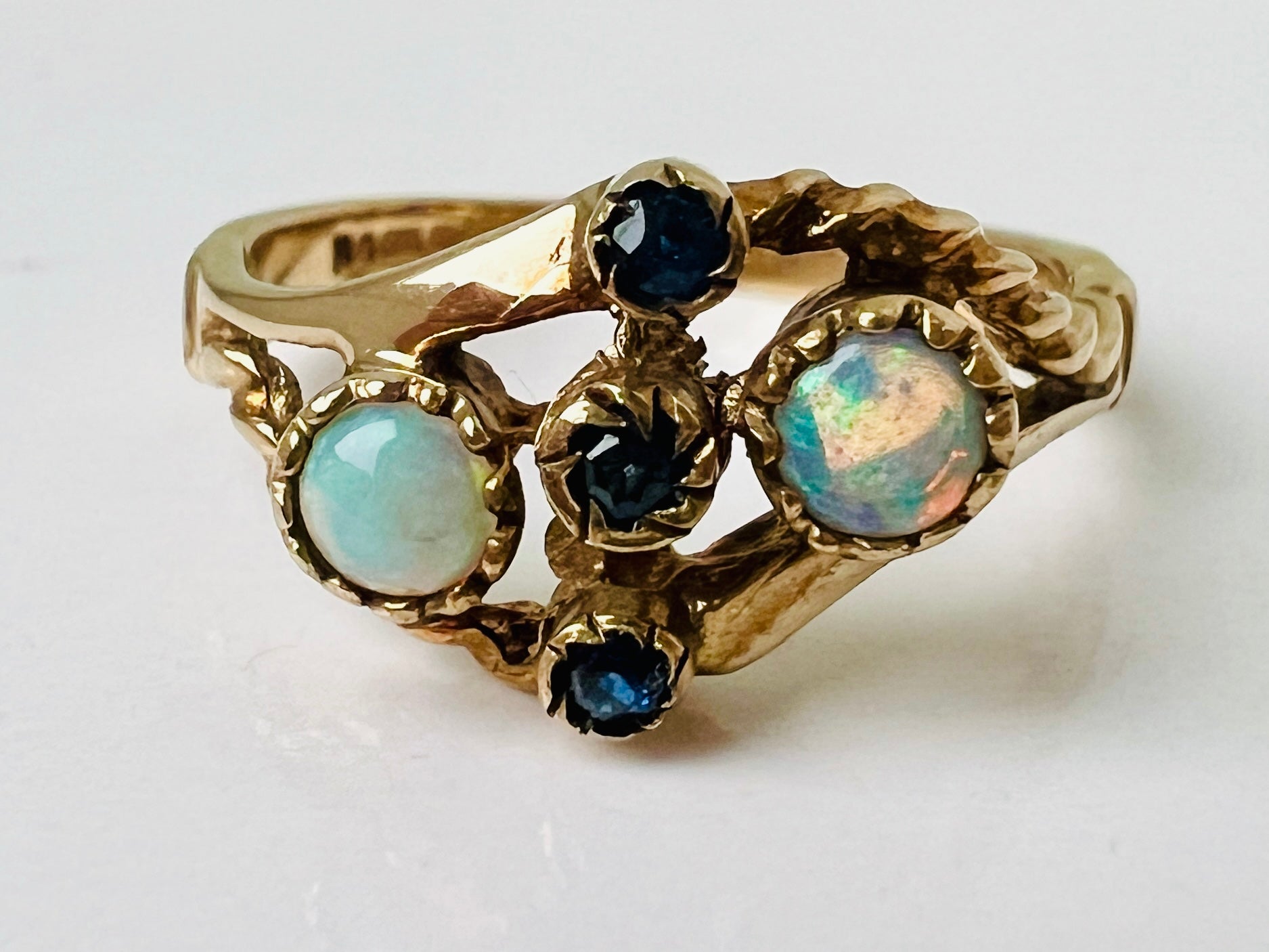 Vintage 9ct Yellow Gold Opal & Sapphire Ring