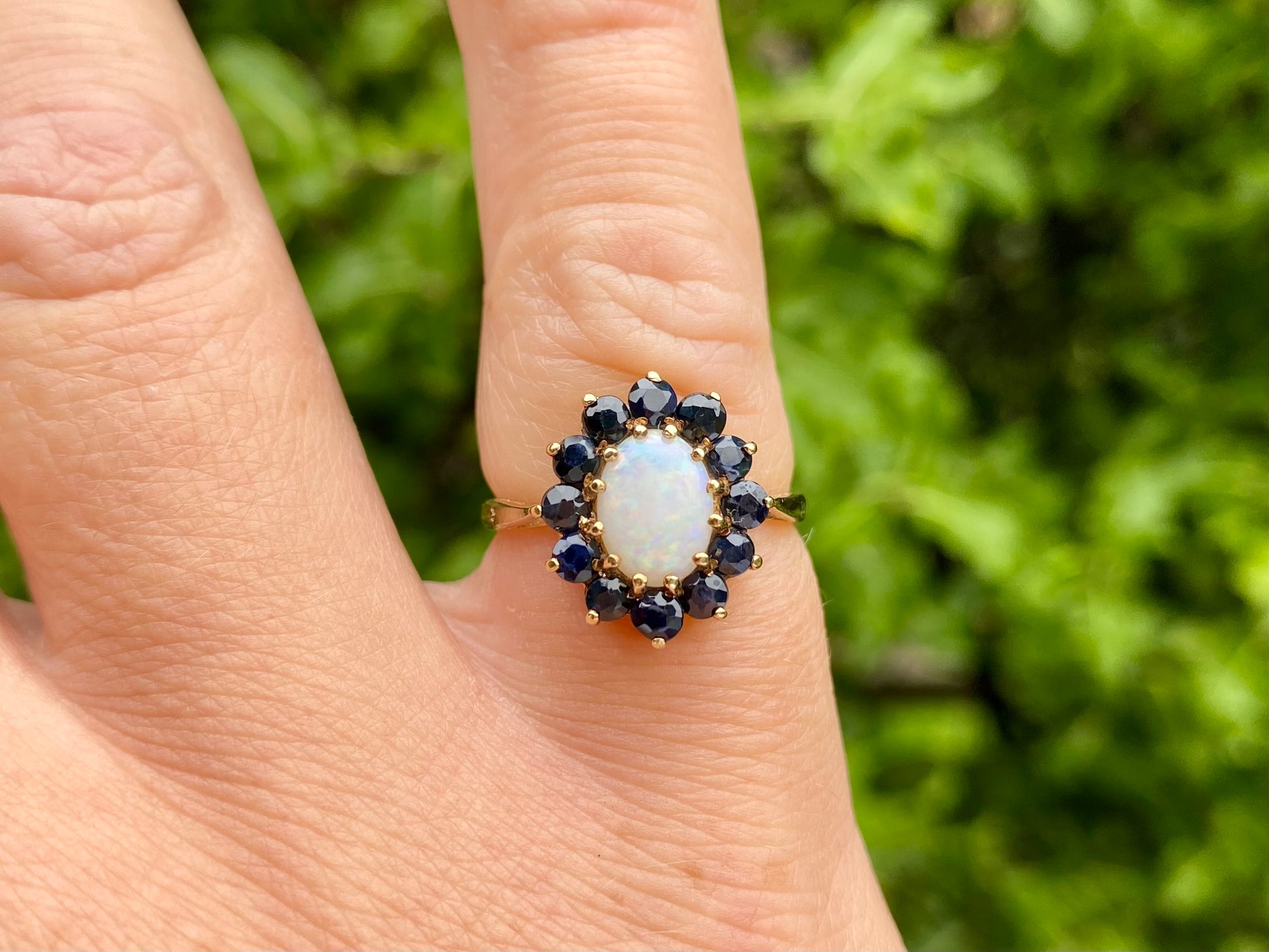 Vintage 9ct Yellow Gold Opal & Sapphire Ring