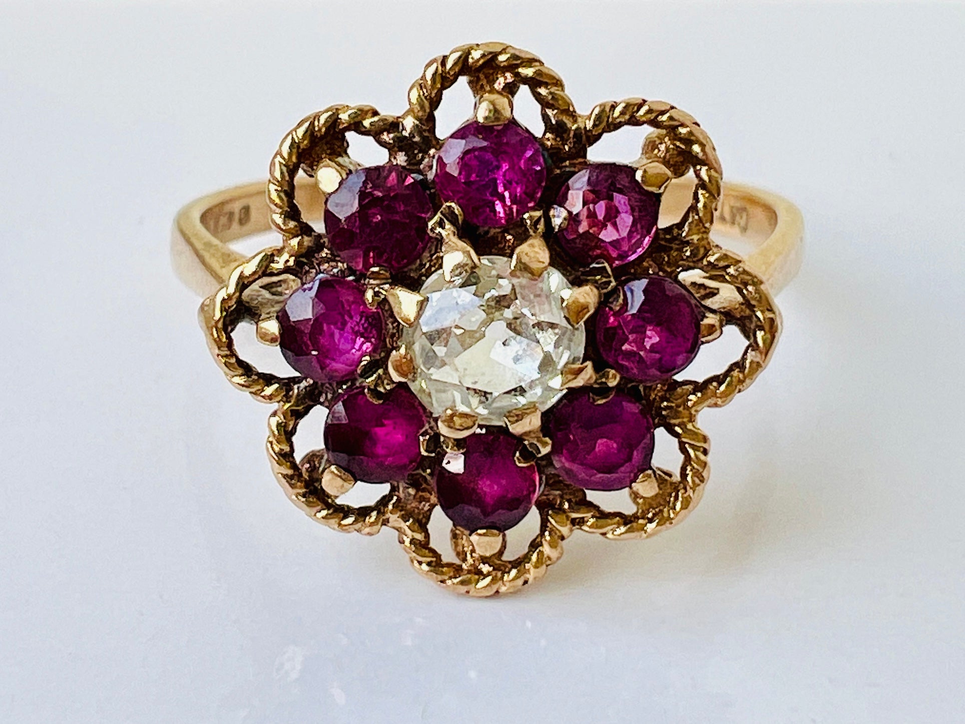 Vintage 9ct Gold Ruby & Old Cut Diamond Ring