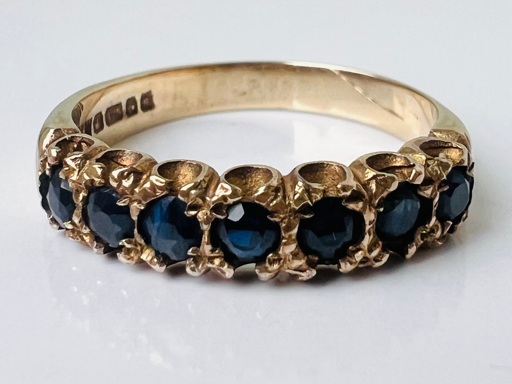 Vintage 9ct Yellow Gold Seven-Stone Sapphire Ring